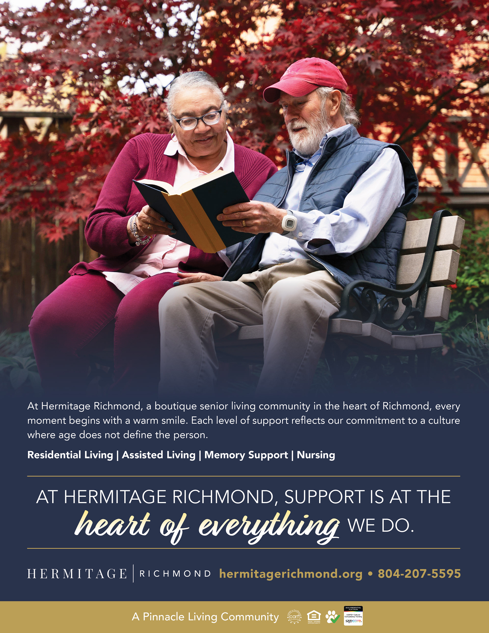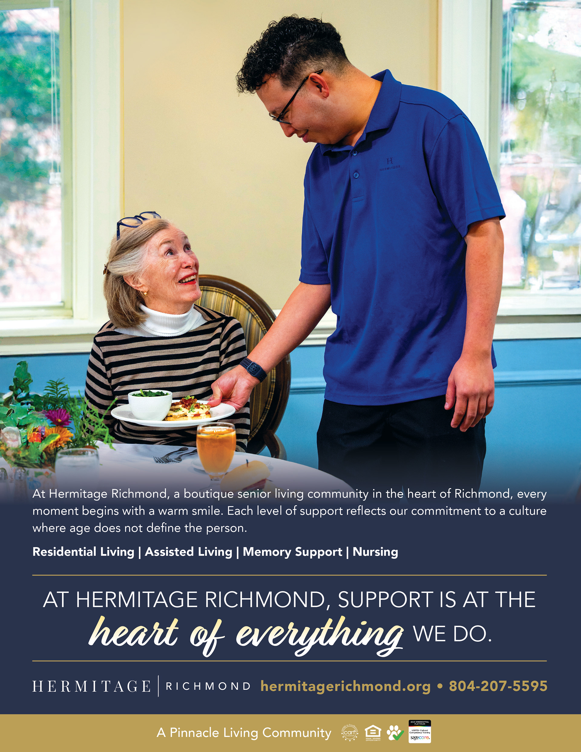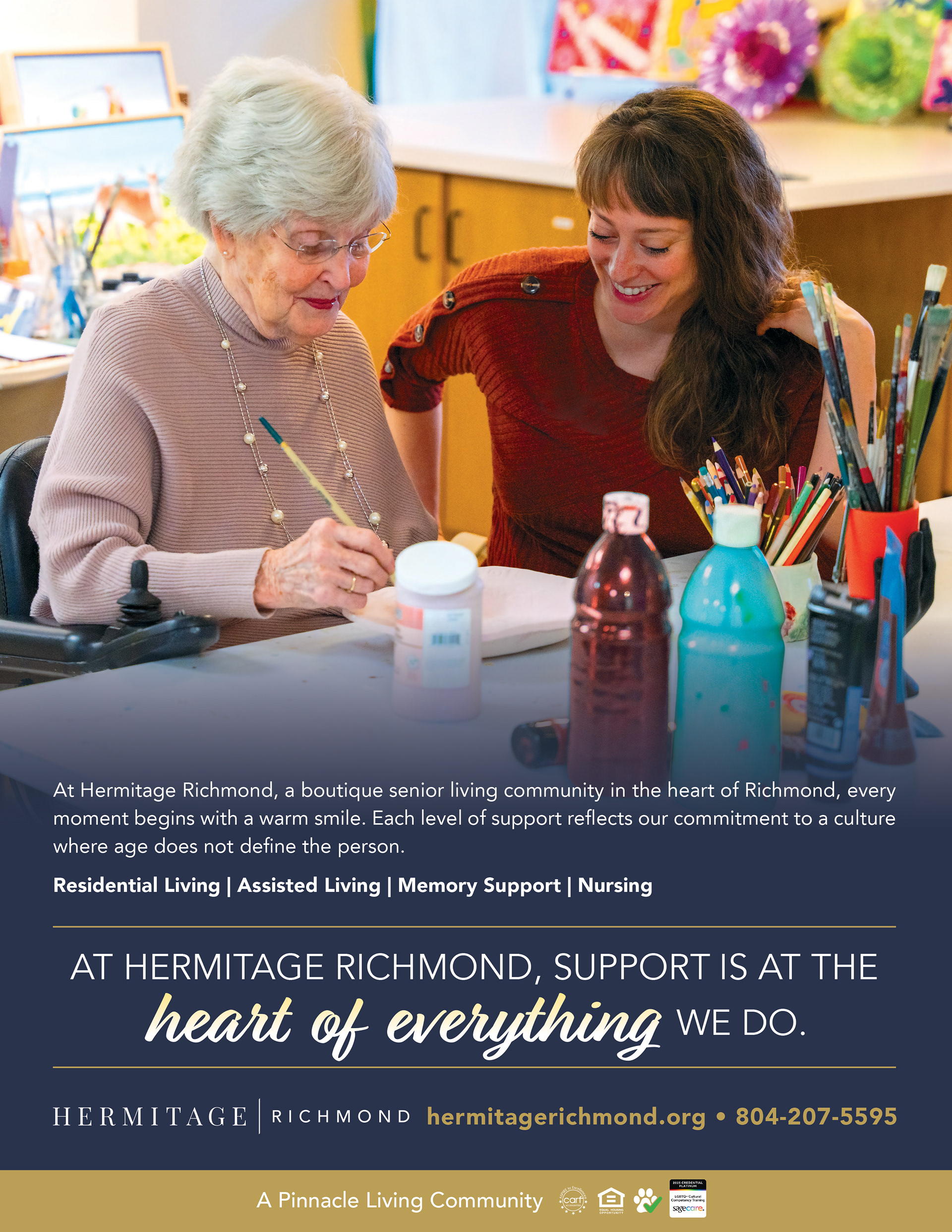 An assisted living community located in downtown Richmond, this campaign highlights the attentive support that residents can expect from team members. Campaign images include time in the art studio, enjoying a meal in the dining room, and enjoying a book on the historic grounds.