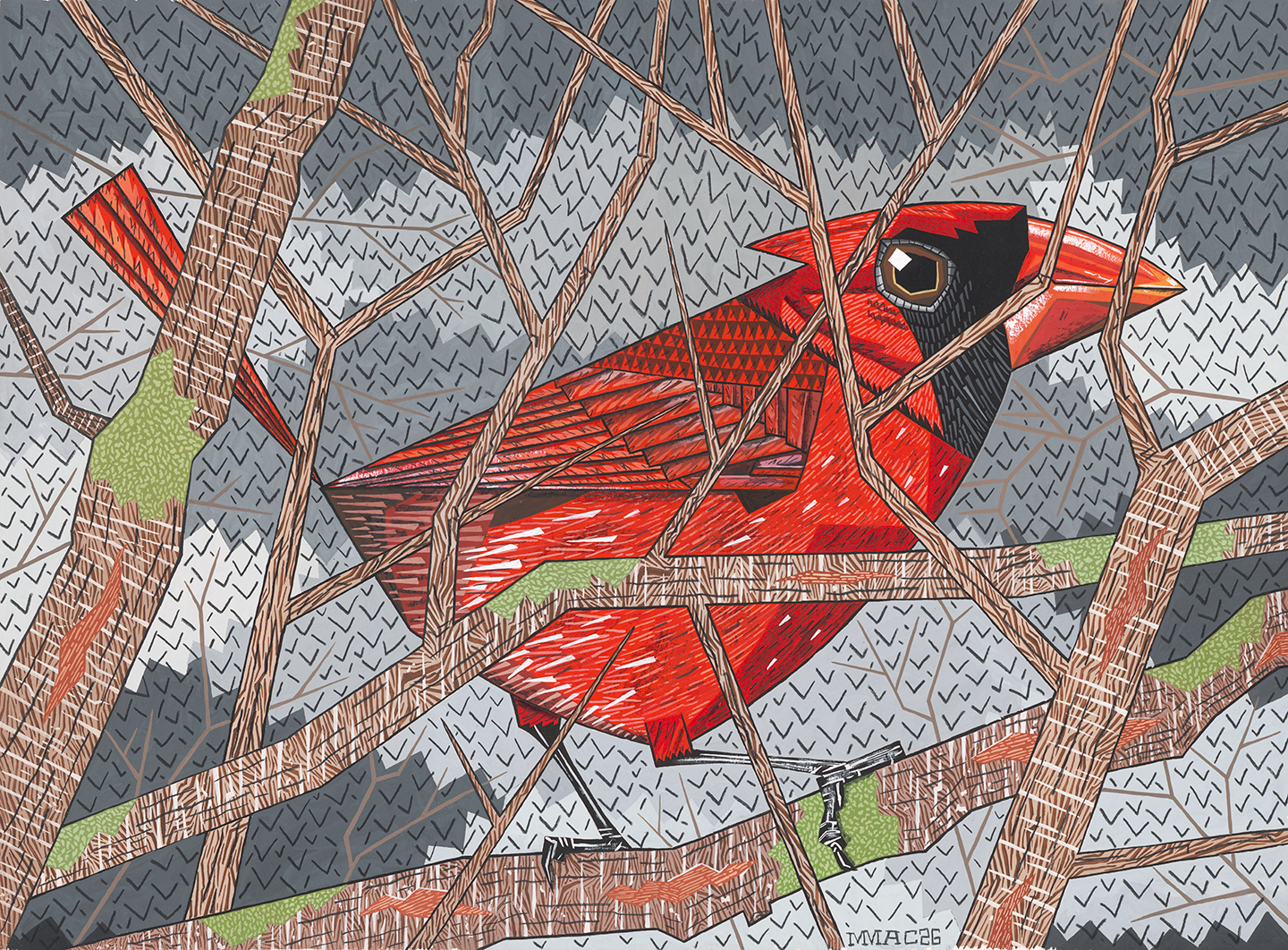 Gouache, Black Colored-Pencil