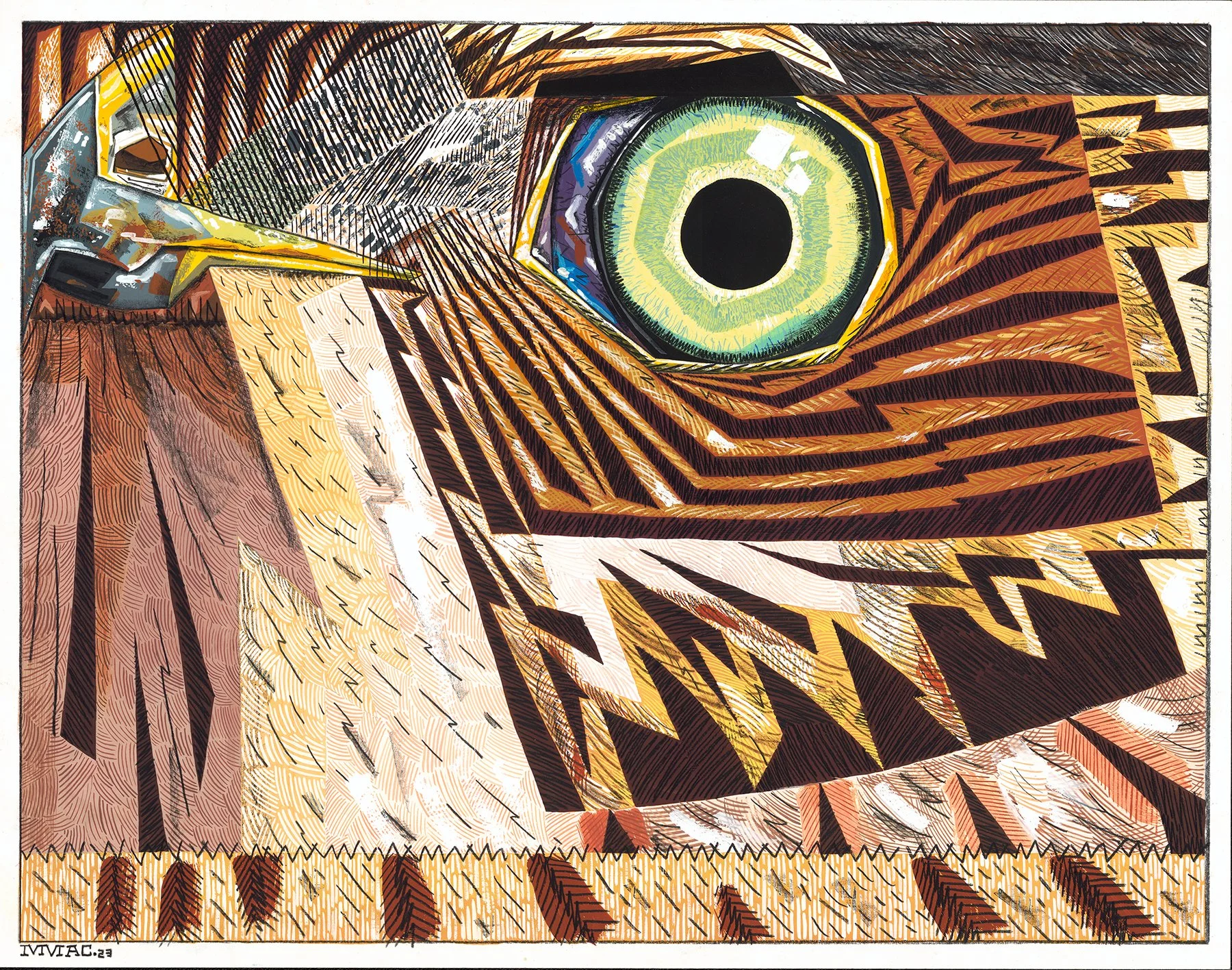 Gouache, Black Colored-Pencil